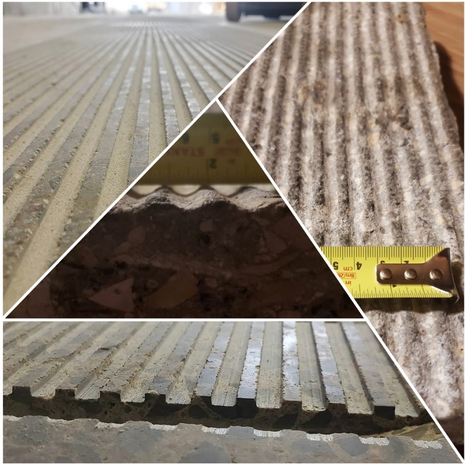 We’ve successfully completed some bridge tineing projects for Ab Transportation. We are able to set up to with in 1mm or less of engineered spec. The equipment we use is electric powered (Quiet) and environmentally friendly. We have dust control equipment available as well. With the various blades and spacers think of it like a 3D printer for grooving. The machine does not change or affect the surface in any way other than the tines that are being cut. Our last project specifications were 3mm grooves set 20 mm on center and 3-5mm in depth. We were able to exceed 30 m2/hr. Due to the compact size and speed we were able to allow single lane traffic to flow smoothly throughout the process. Not only were the engineers impressed with the degree of precision that achieved, but the project managers were also equally impressed with the speed and professional manner it was completed in.